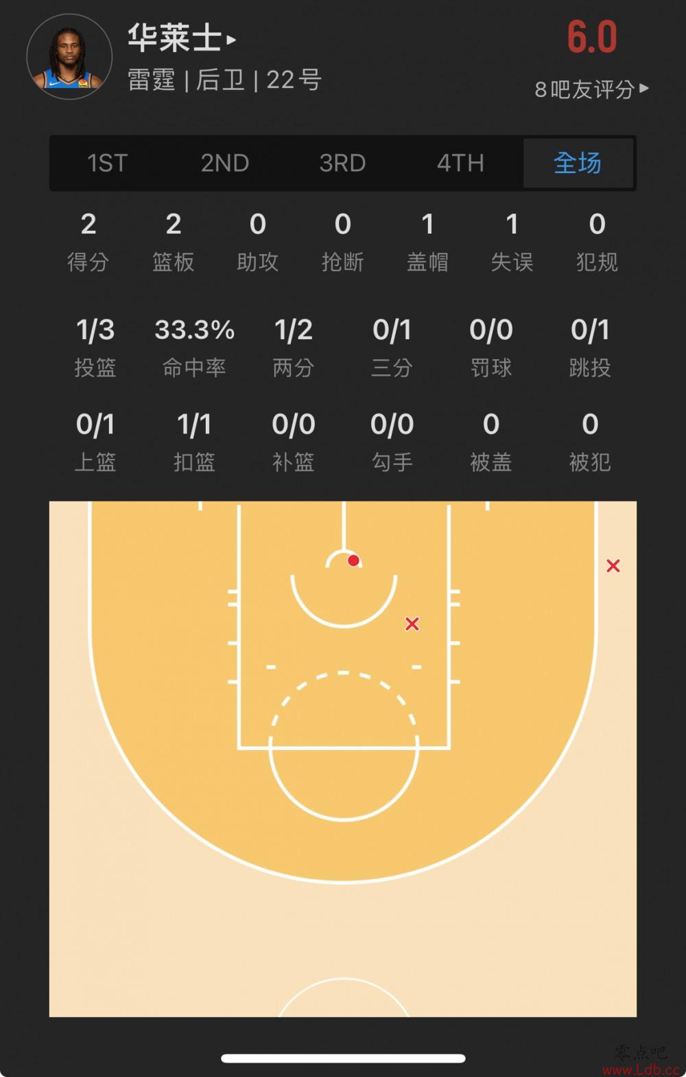雷霆10号秀 卡森-华莱士 出战16.9分钟