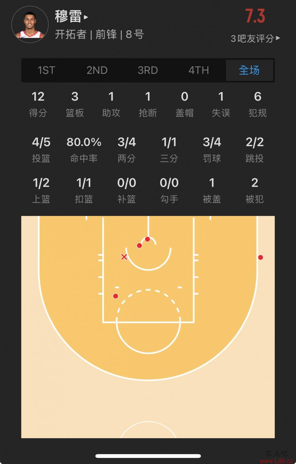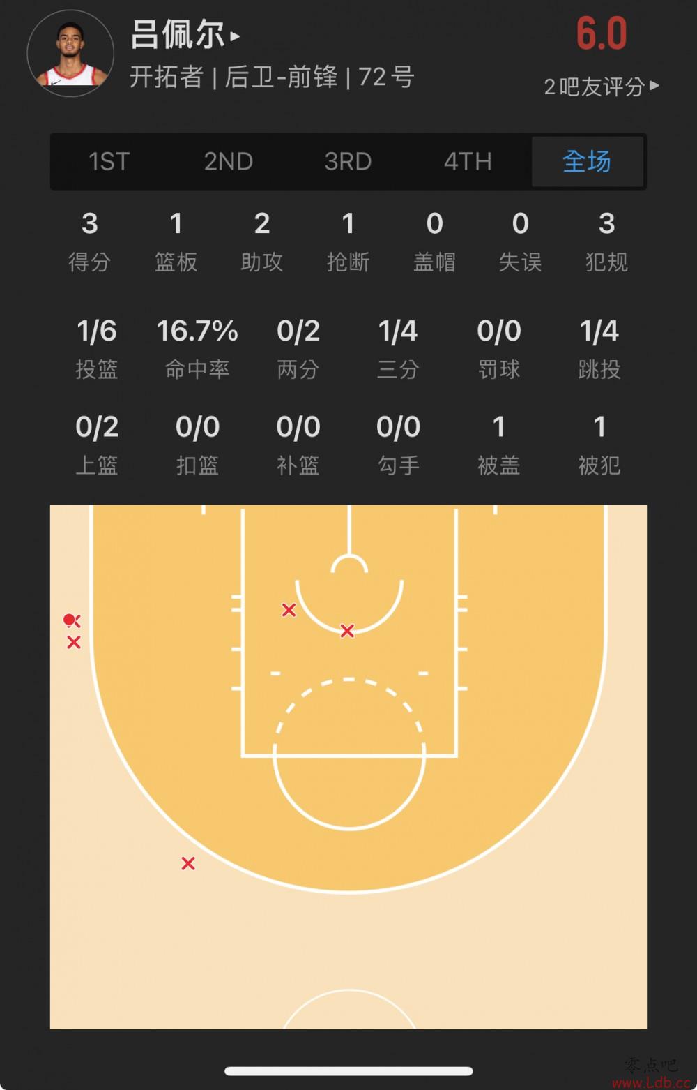 开拓者43号秀 拉扬-吕佩尔 出战18.3分钟