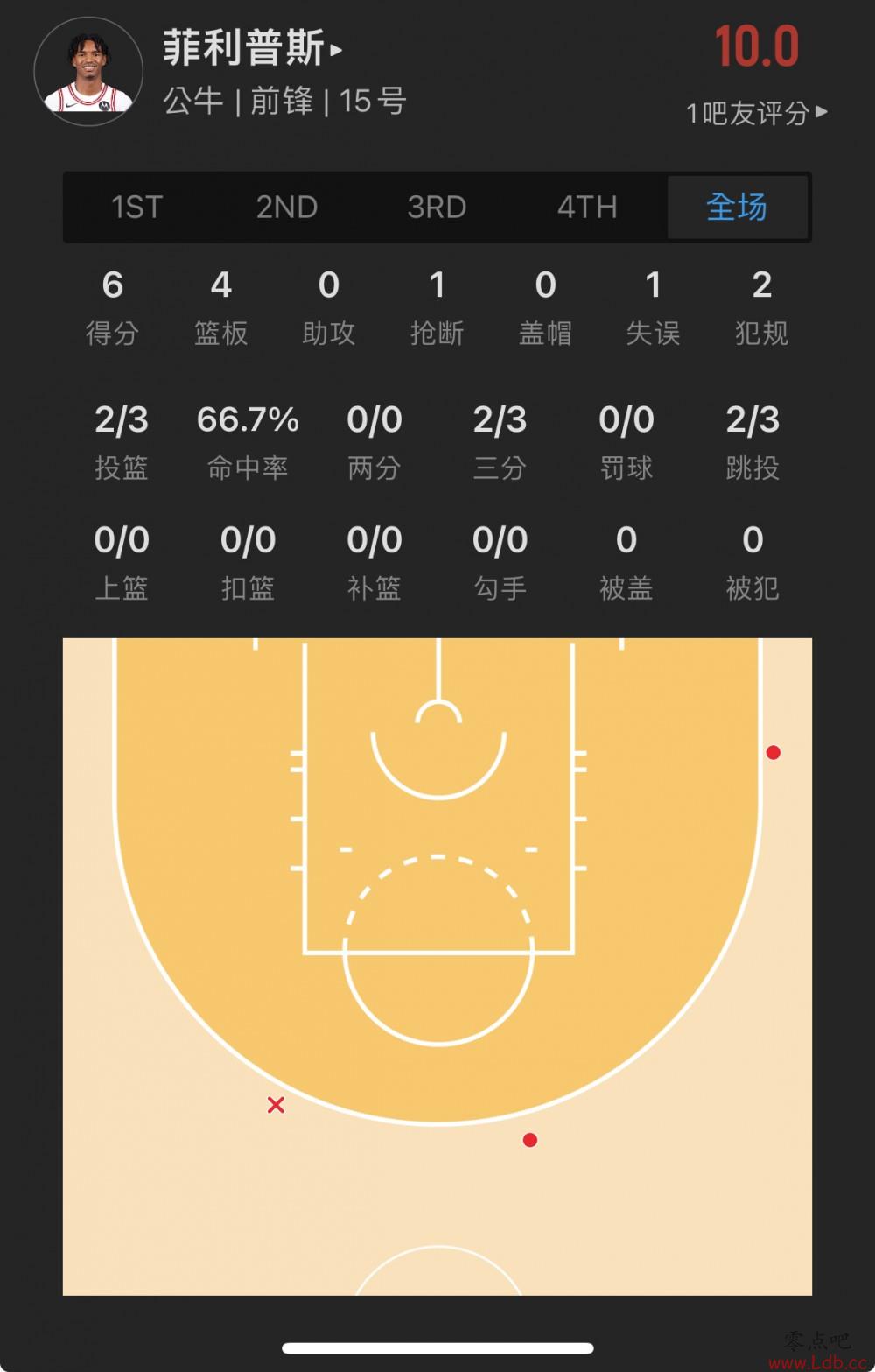 公牛35号秀 朱利安-菲利普斯 出战15.0分钟