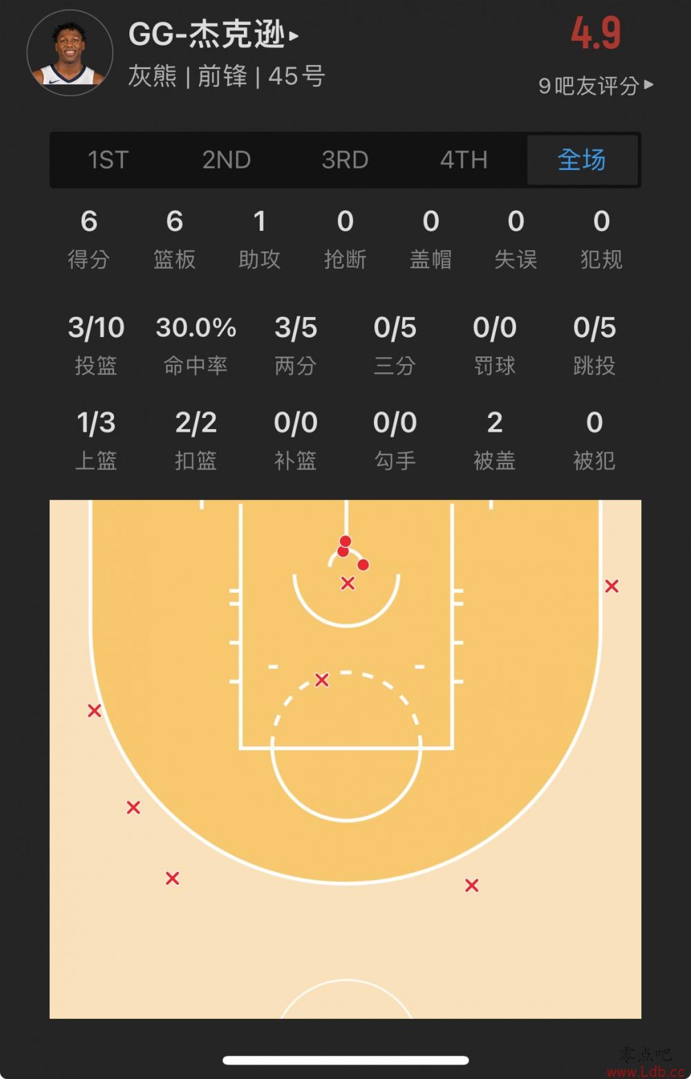 灰熊45号秀 GG-杰克逊二世 出战21.7分钟