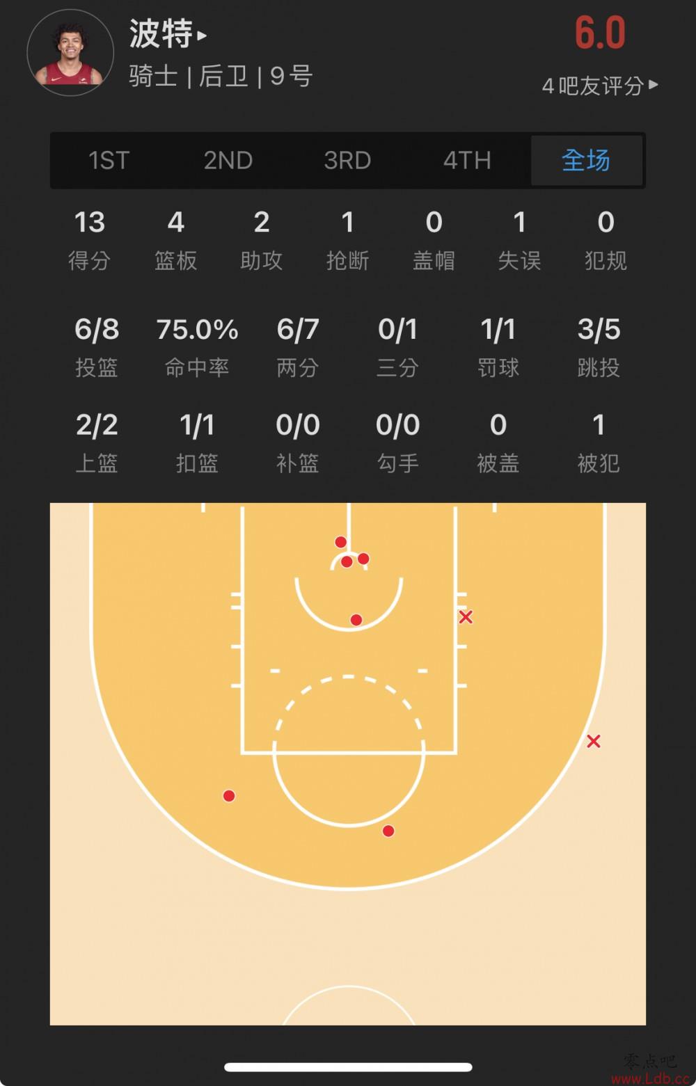 骑士落选秀 克雷格-波特 出战14.9分钟