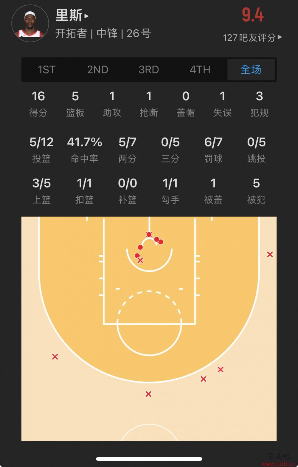 开拓者落选秀 杜普-里斯 出战30.6分钟