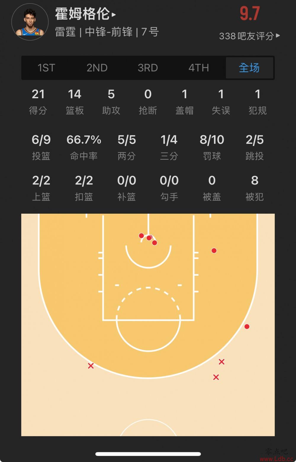 雷霆上届榜眼秀 切特-霍姆格伦 出战33.2分钟
