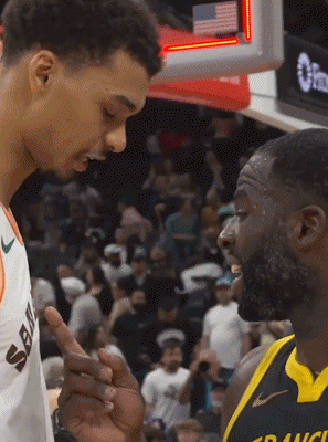 聊啥呢??追梦赛后向文班面授机宜 两人简单交流了一番