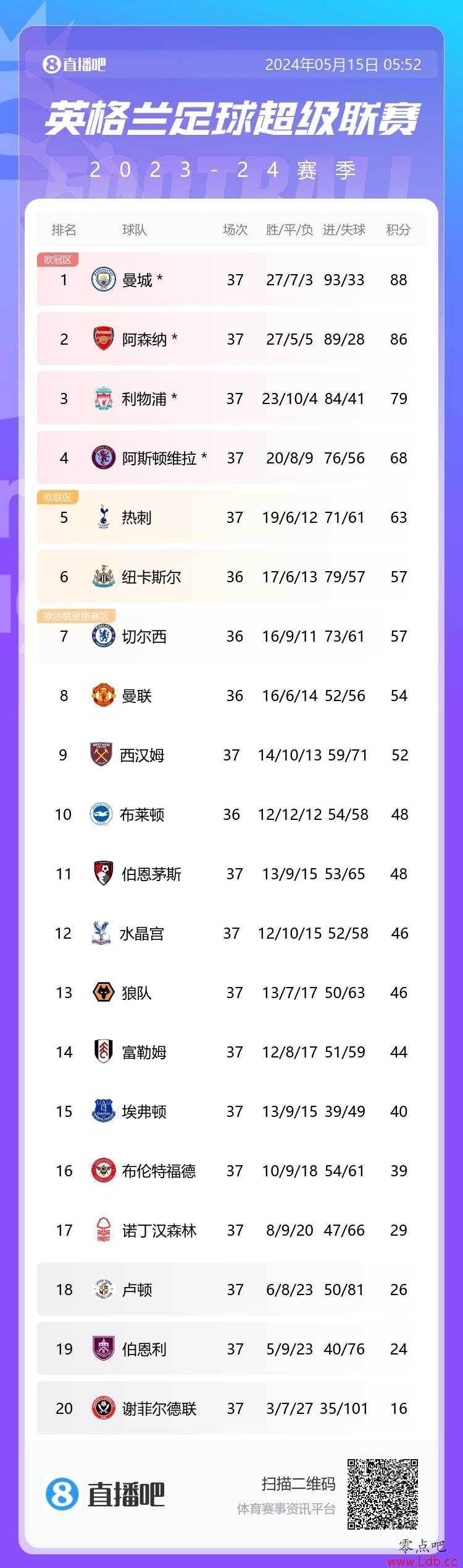 零点吧足球05月15日 曼城2-0击败热刺,蓝月亮以2分的优势领先阿森纳,占据争冠主动权。