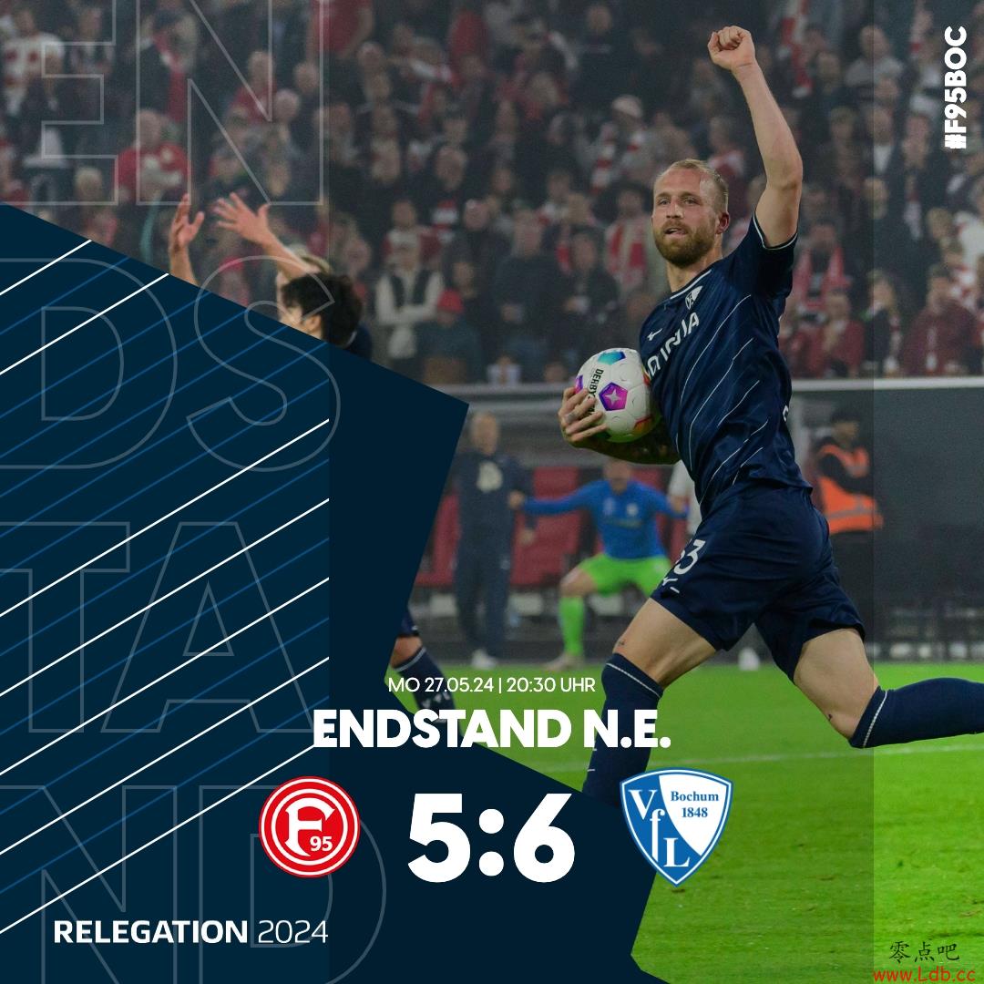 零点吧足球5月28日讯 德甲保级附加赛,波鸿在首回合主场0-3杜塞尔多夫的情况,次回合客场3-3将比赛拖进点球大战。