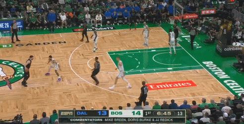 ??欧文化?东契奇穿越挡拆防守 迎着三人滞空拉杆世界名画!