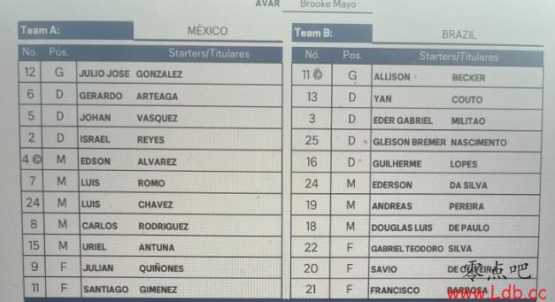零点吧足球06月09日讯 9点友谊赛,墨西哥对阵巴西。本场比赛首发名单公布。