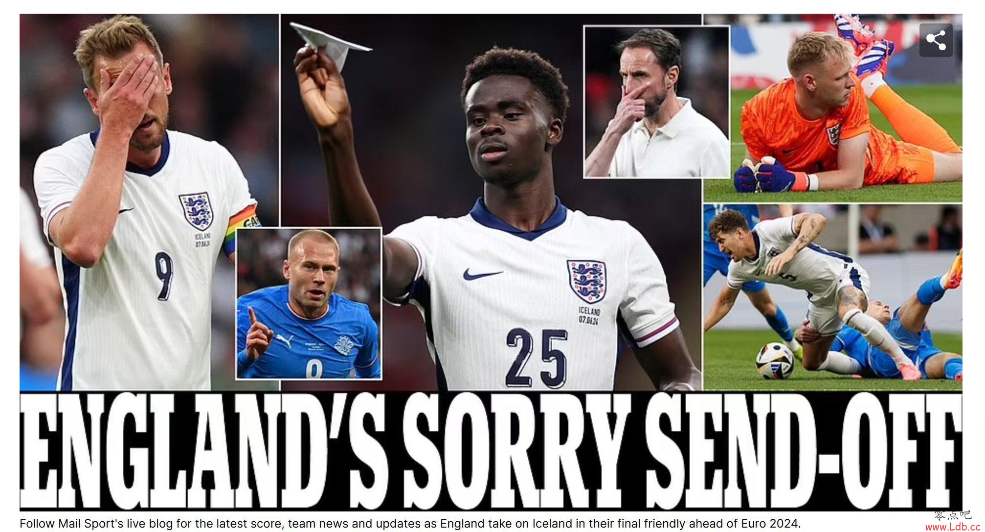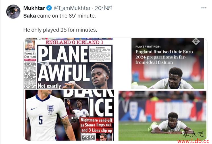 昨晚,英格兰队在欧洲杯前的友谊赛中以0-1输给冰岛。萨卡在下半场替补出场,总共踢了24分钟。今天早上,数十家报纸和报道将萨卡的形象作为失败的代言人,尽管英格兰队失球时他甚至不在球场上。