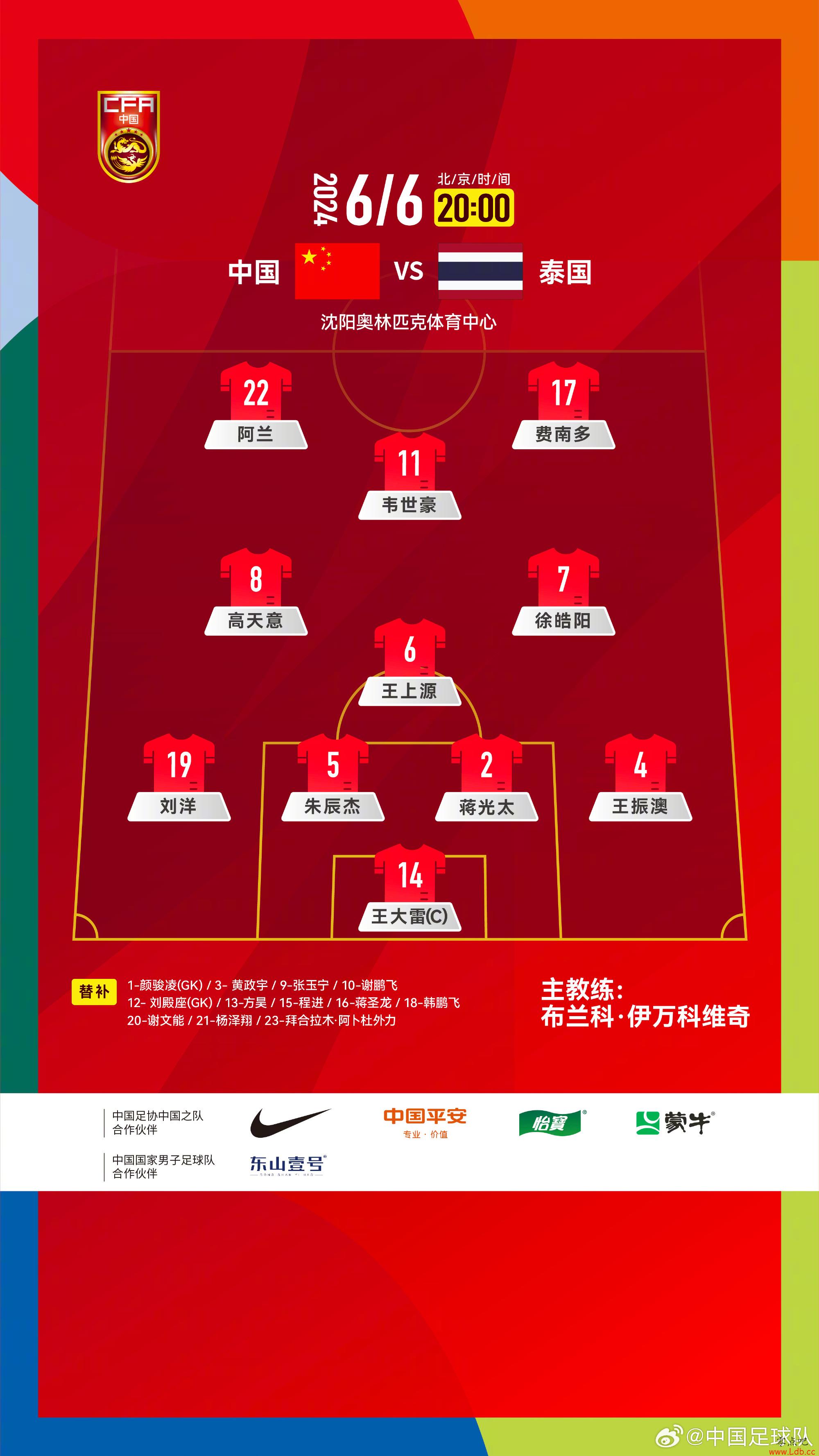 中场:10-谢鹏飞(上海申花)、11-韦世豪(成都蓉城)、3-黄政宇(山东泰山)、20-谢文能(山东泰山)、15-程进(浙江)、6-王上源(河南)、22-方昊(北京国安)、13-徐皓阳(上海申花)
