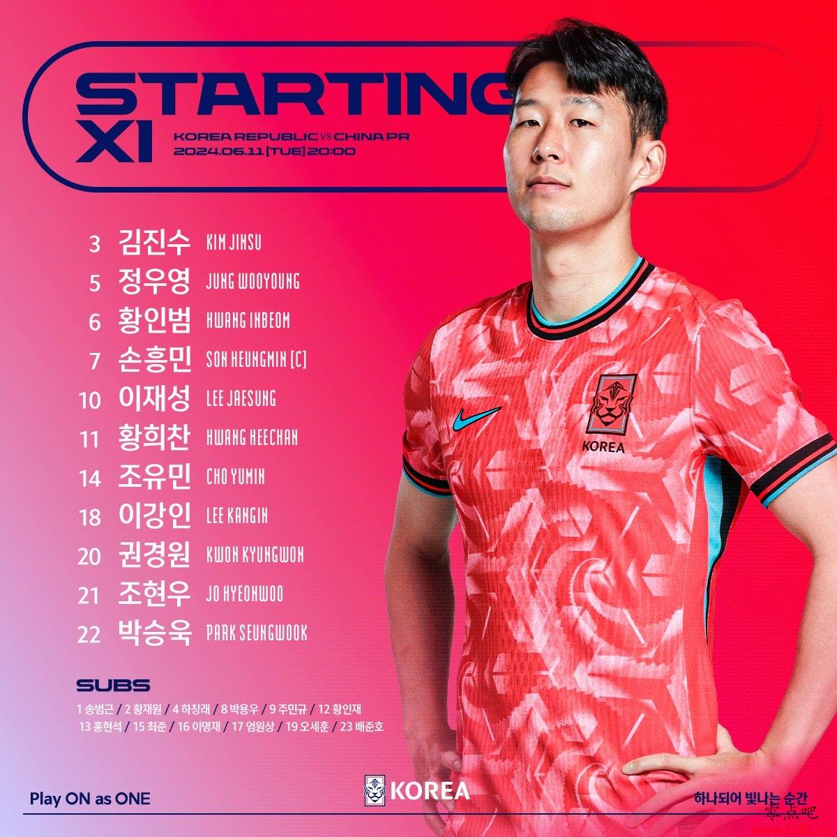 零点吧足球06月11日讯 世预亚第二阶段C组第6轮,中国客场挑战韩国,赛前韩国官方公布了首发阵容。