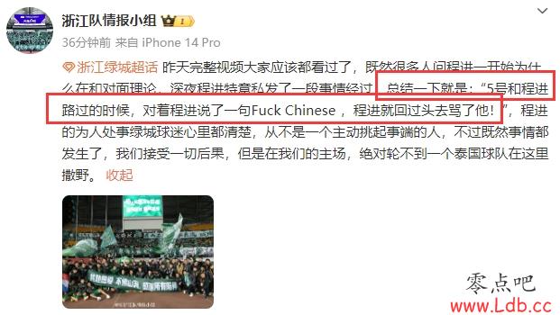 去年11月29日亚冠小组赛,浙江主场3-2击败武里南联,双方爆发大规模冲突。而引发冲突的正是武里南联5号球员提拉通。