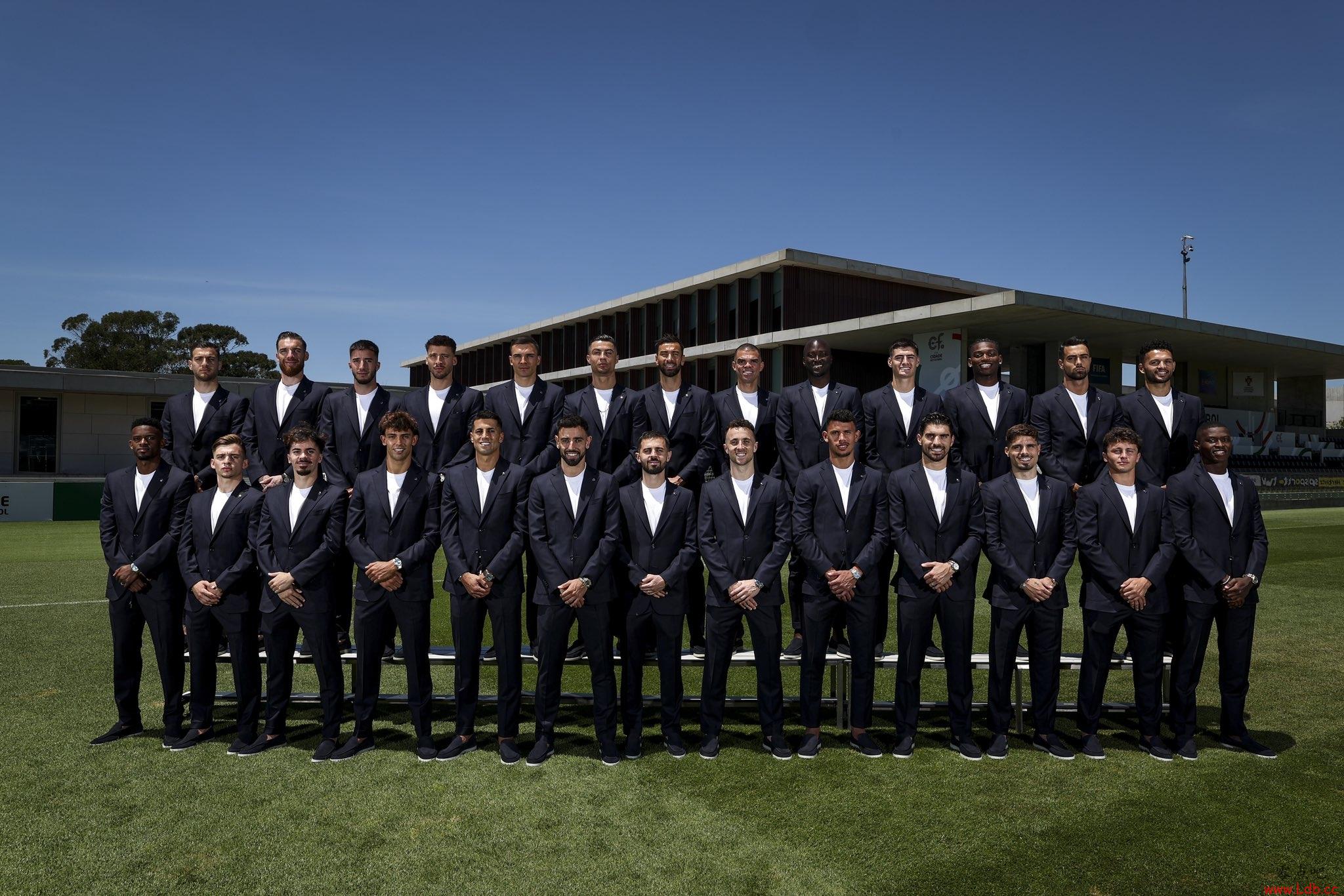 零点吧足球06月14日讯 欧洲杯开幕在即,葡萄牙队分享全队西装合照。
