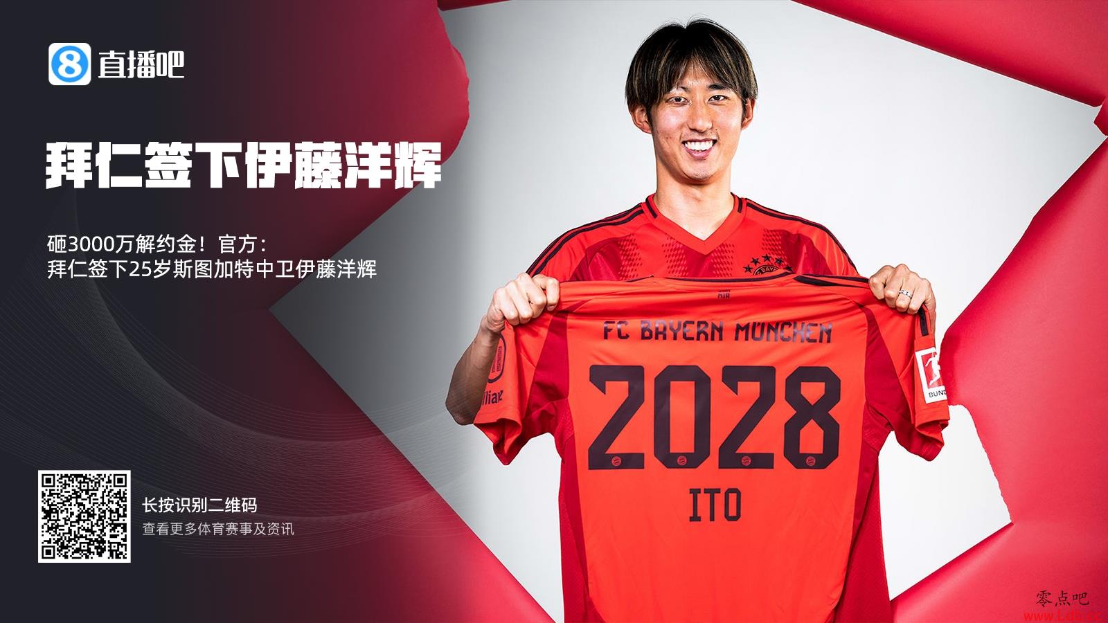 官方消息,拜仁签下斯图加特日本中卫伊藤洋辉,双方签约至2028年。