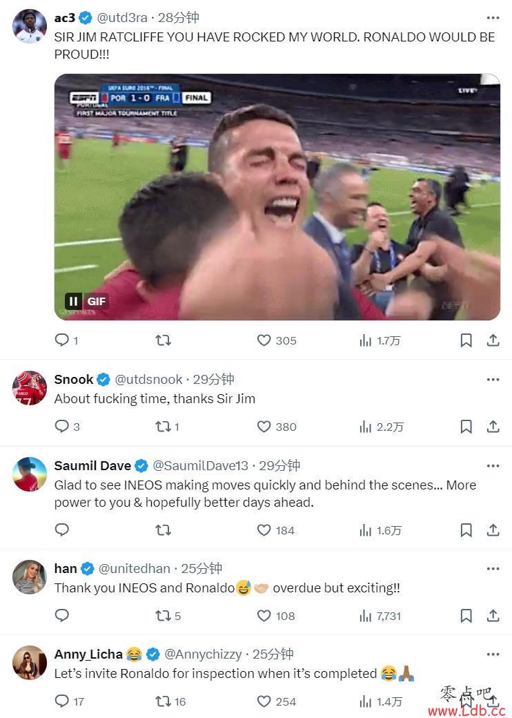 ——拉特克利夫爵士你震撼了我的世界!C罗会感到骄傲的!