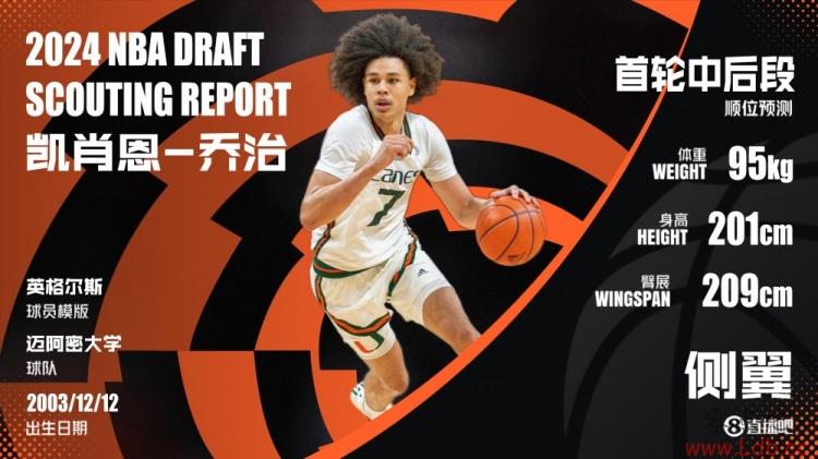 凯肖恩-乔治来自瑞士,在为迈阿密大学效力前,他在法国埃兰沙隆俱乐部效力了四年。凯肖恩-乔治对比赛有着天生的感觉,球商、防守意识始终在线,大一赛季更是展现出不俗的投篮效率,尽管运动能力不够突出,但他有着不错的身高臂展,“球队润滑剂”的特质与进入NBA后球队方面的培养想必足以弥补这些缺点。