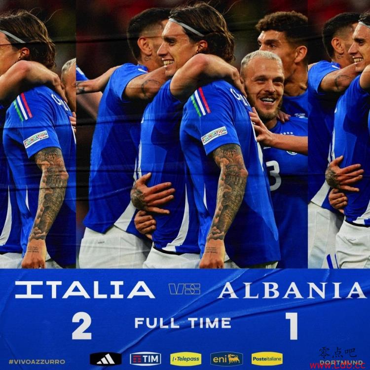 零点吧足球6月16日讯 欧洲杯小组赛B组第1轮,意大利2-1逆转阿尔巴尼亚。