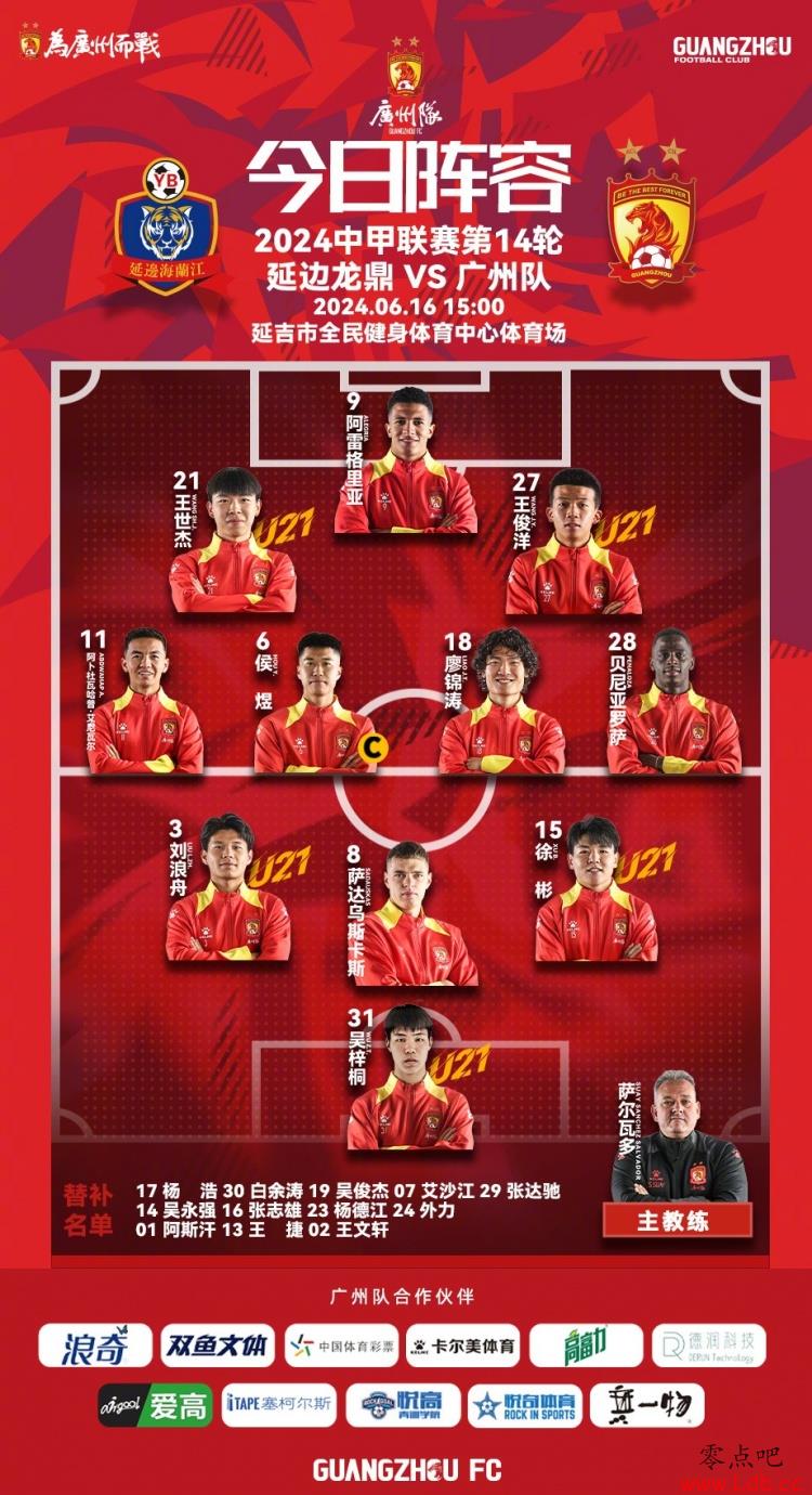 广州队今日首发阵容!!!一起为广州队加油!!!