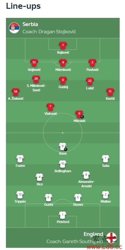 欧洲杯-英格兰vs塞尔维亚首发:凯恩、贝林厄姆先发,阿诺德任中场