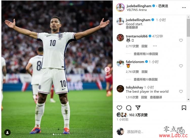 零点吧足球6月17日讯 在北京时间今天凌晨进行的欧洲杯首轮小组赛中,贝林厄姆头球破门,帮助英格兰1-0击败塞尔维亚。