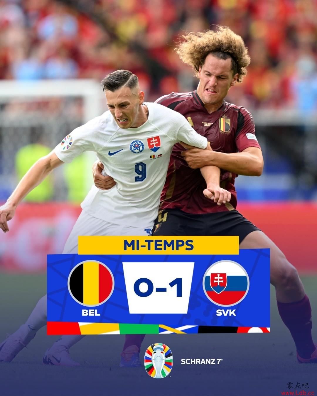 半场-卢卡库屡失良机多库送礼施兰茨建功 比利时暂0-1斯洛伐克