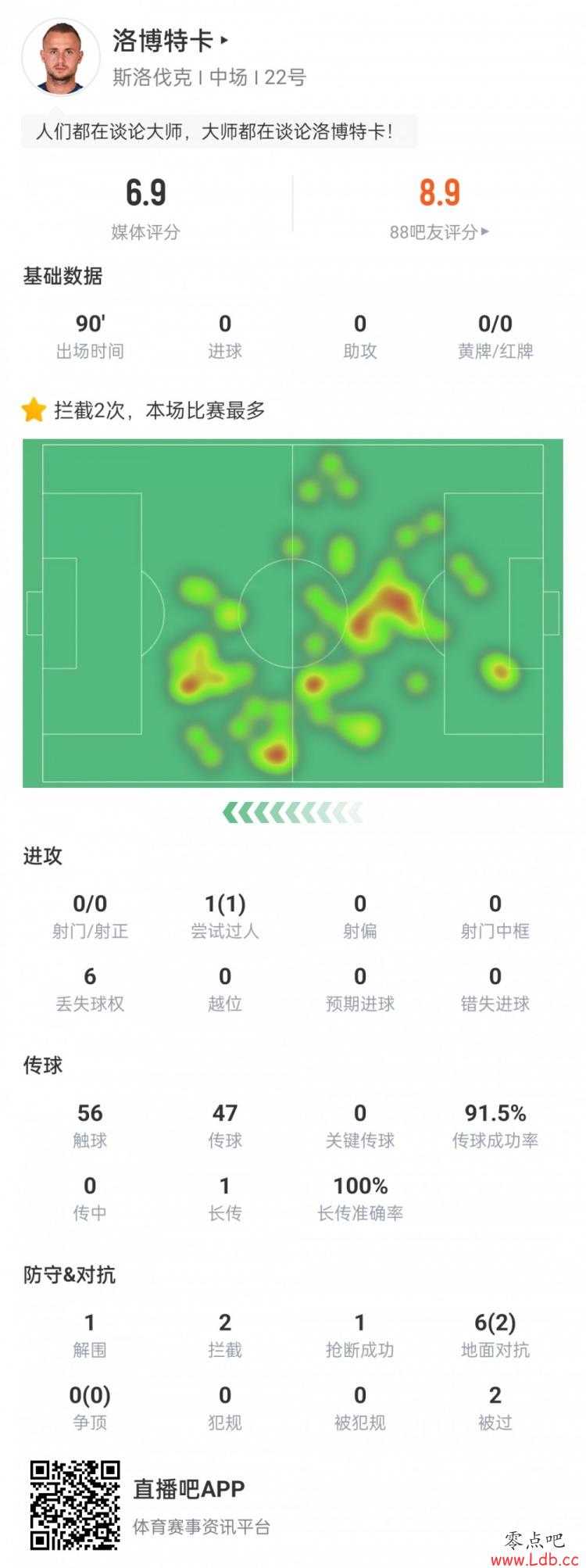 零点吧足球6月18日讯 欧洲杯小组赛E组第1轮,斯洛伐克1-0击败比利时。赛后,身高1.68米的斯洛伐克后腰洛博特卡当选全场最佳球员。