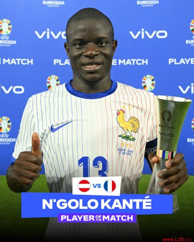 零点吧足球6月18日讯 欧洲杯小组赛,法国1-0奥地利开门红。此役重回国家队的33岁坎特发挥依旧出色,当选全场最佳球员,赛后坎特接受采访。