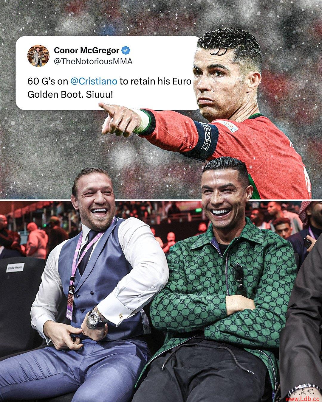 赛前,“嘴炮”康纳-麦格雷戈6万美元打赌C罗获2024年欧洲杯金靴。