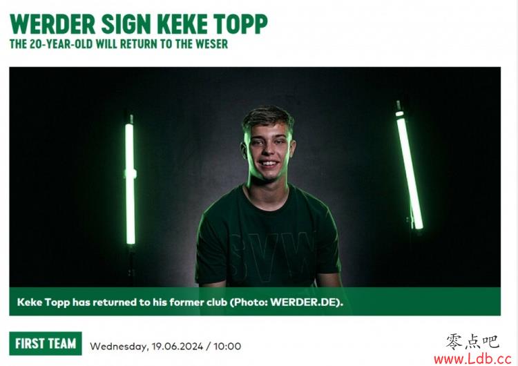 零点吧足球6月19日讯 官方消息,不莱梅签下沙尔克04中锋科克-托普,这名出自不莱梅青训的20岁球员重回球队。