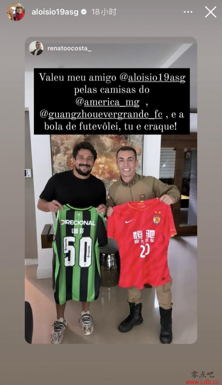 洛国富在社媒转发了友人的这条动态,该友人对洛国富赠送米内罗美洲和恒大的这两件球衣表示了感谢。