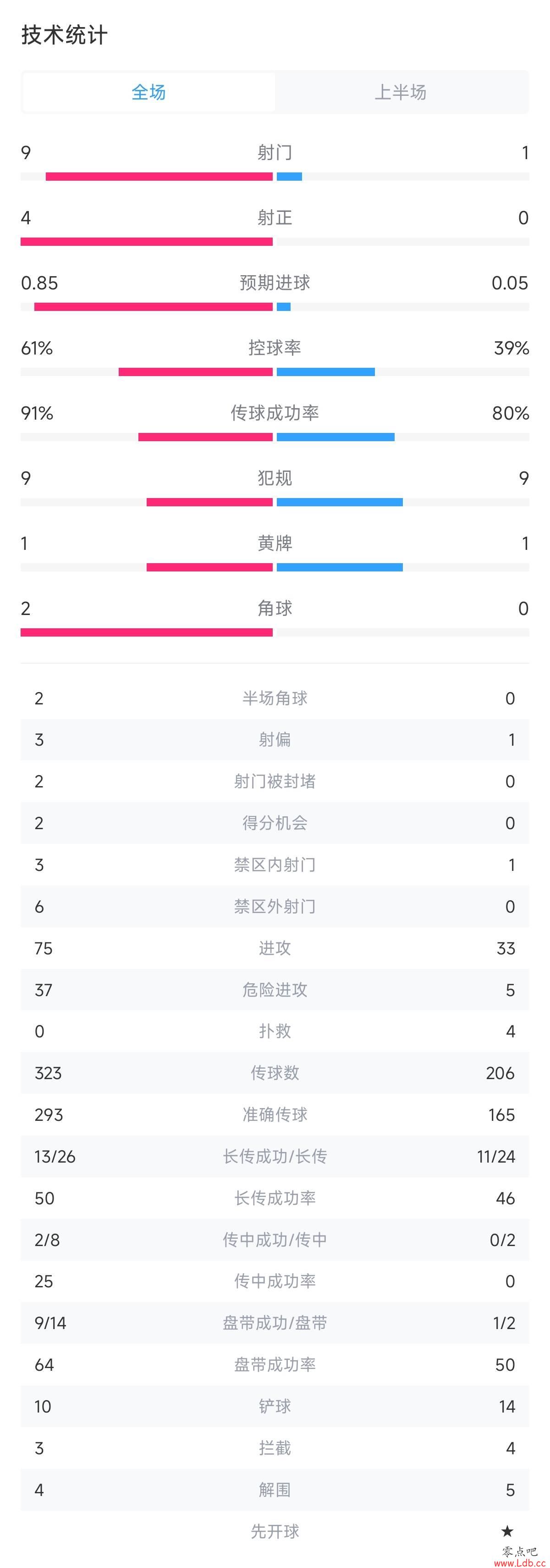 西班牙vs意大利半场数据:西班牙9射门4射正 意大利仅1射门0射正