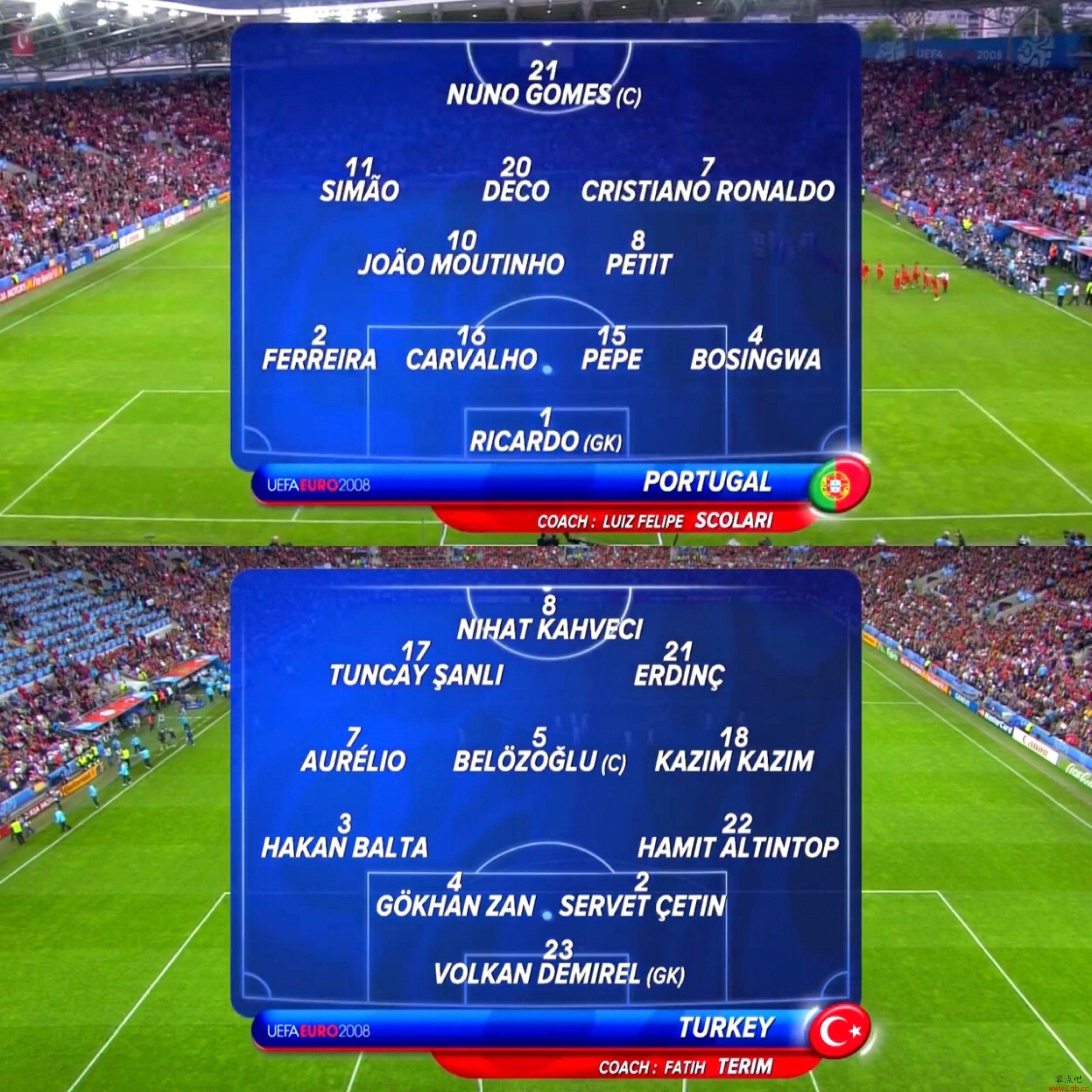 39岁C罗+41岁佩佩!08年欧洲杯葡萄牙vs土耳其 首发22人剩2人征战