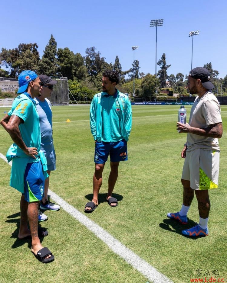 内马尔因伤无缘本届美洲杯,他来到训练场小试身手,与维尼修斯、拉菲尼亚、马尔基尼奥斯会面,并在社交媒体上晒出合照。