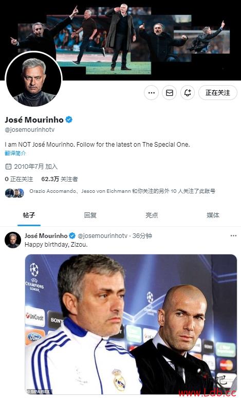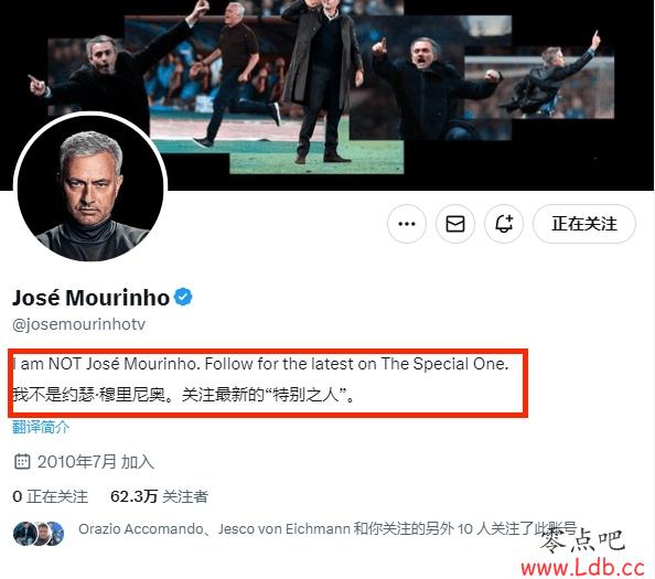 假报道的账号仅为高仿的球迷号,并不是穆帅的账号: