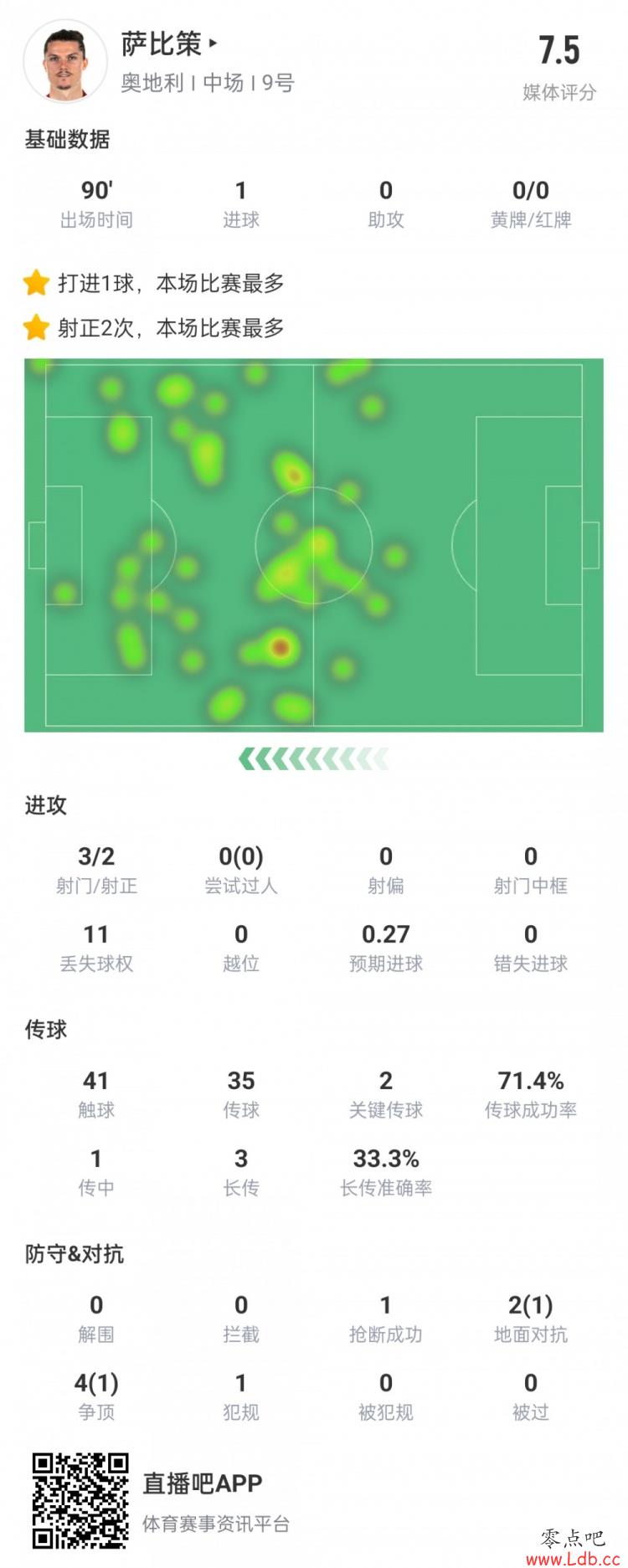 欧足联技术观察员小组给他的评语:萨比策整场比赛都很活跃。他控球时极具威胁,在对手两条线之间提供接球点,并通过跑身后冲击对手的防线。他在防守端也很努力,并在最后时刻打入制胜一球。