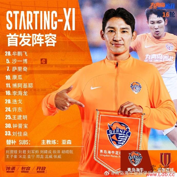 青岛海牛vs成都蓉城 首发阵容出炉,开启战斗!