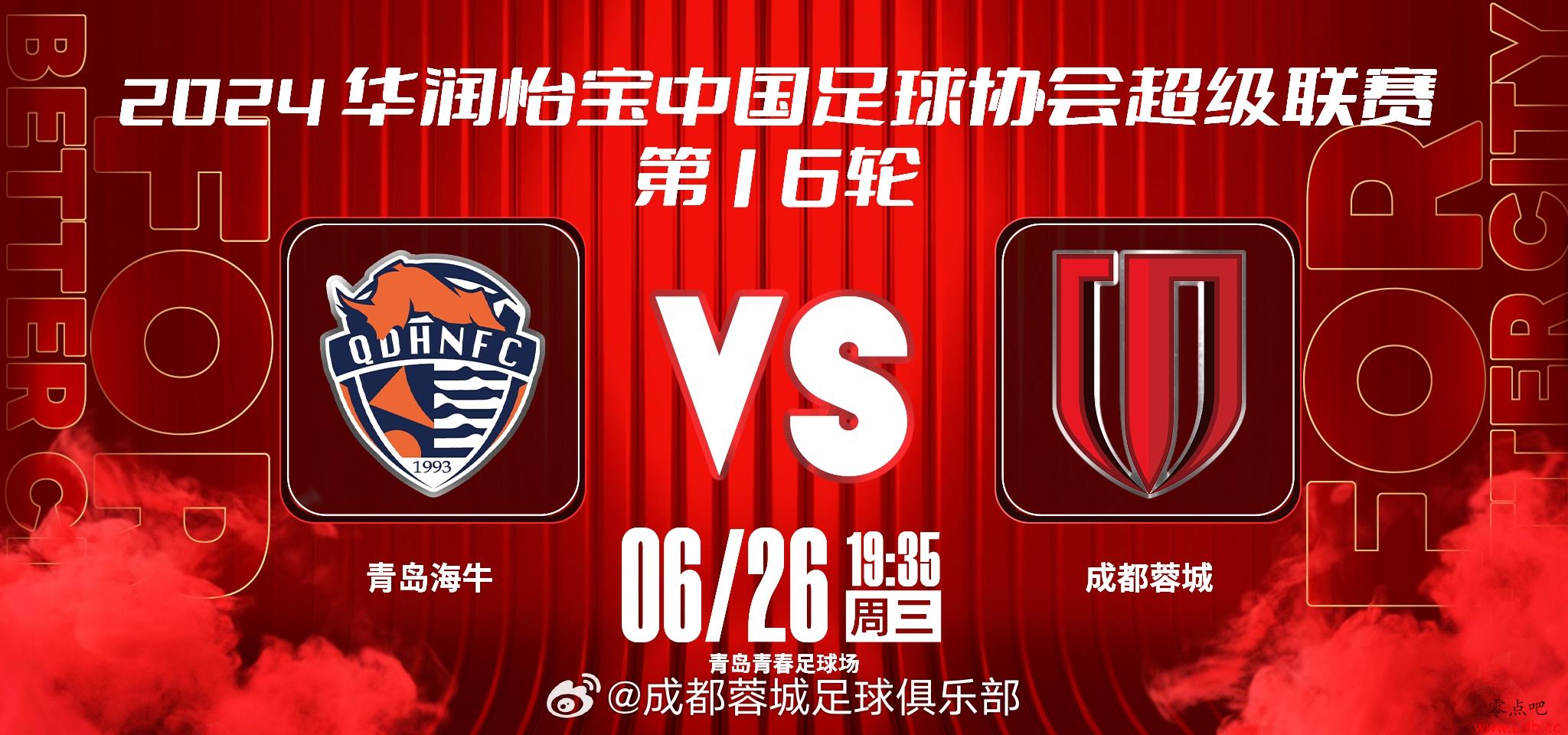 零点吧足球6月26日讯 北京时间19:35,中超第16轮,青岛海牛vs成都蓉城,赛前双方首发公布。本场比赛韦世豪继续伤缺,补报的帕拉西奥斯迎来赛季首秀。