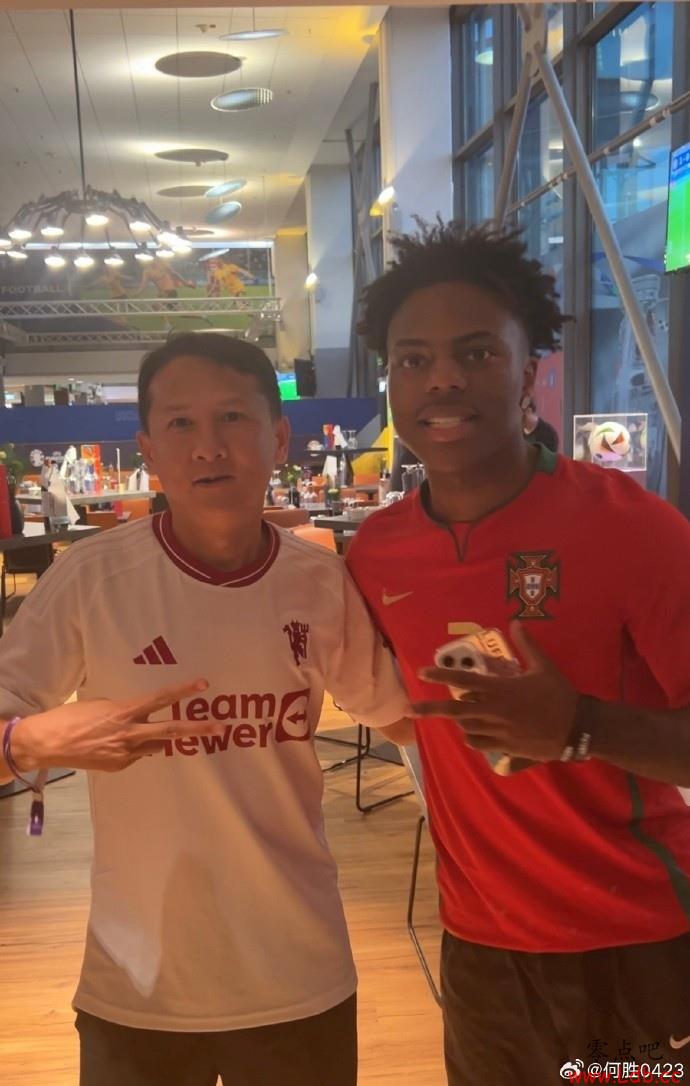 这次在德国观看欧洲杯期间,“退钱哥”何胜遇见了“甲亢哥”小达伦-沃特金斯,何胜在社媒晒出合影并写道:“偶遇C罗最大粉头。”