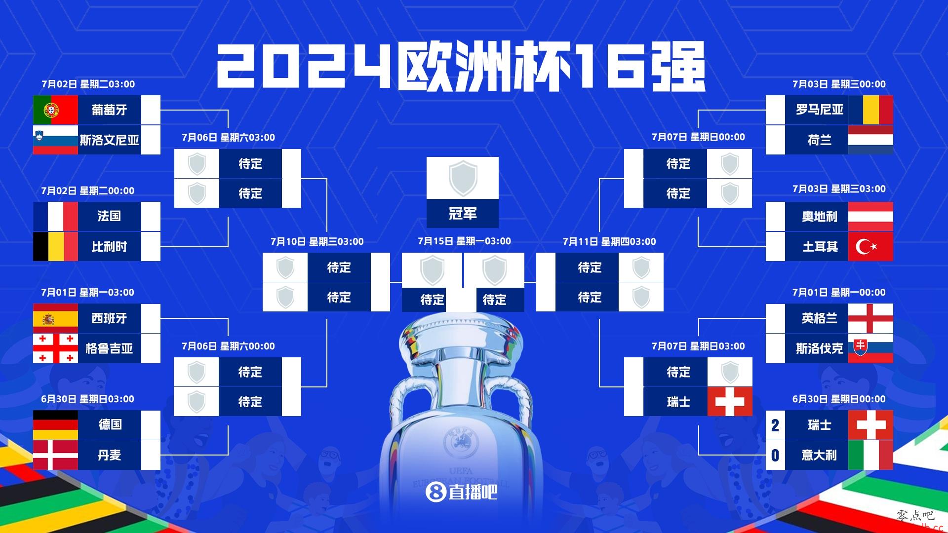 零点吧足球06月30日讯 欧洲杯1/8决赛,瑞士2-0淘汰意大利,将在1/4决赛中对阵英格兰vs斯洛伐克的胜者。