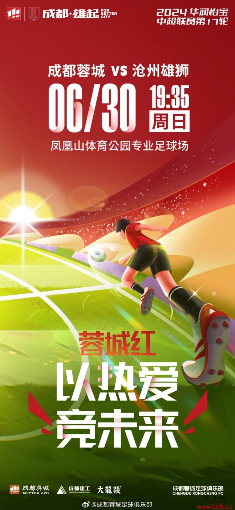 比赛日——6月30日19:35,中超第17轮,成都蓉城vs沧州雄狮