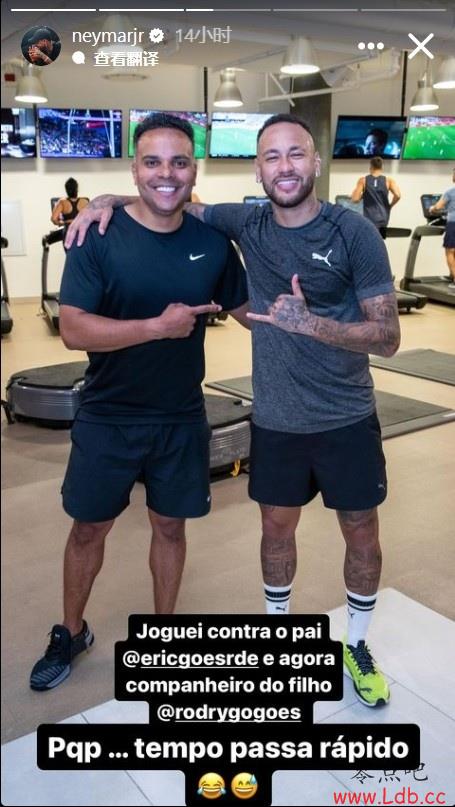 零点吧足球6月30日讯 内马尔更新社媒晒出自己与39岁的罗德里戈父亲在健身房的合照。