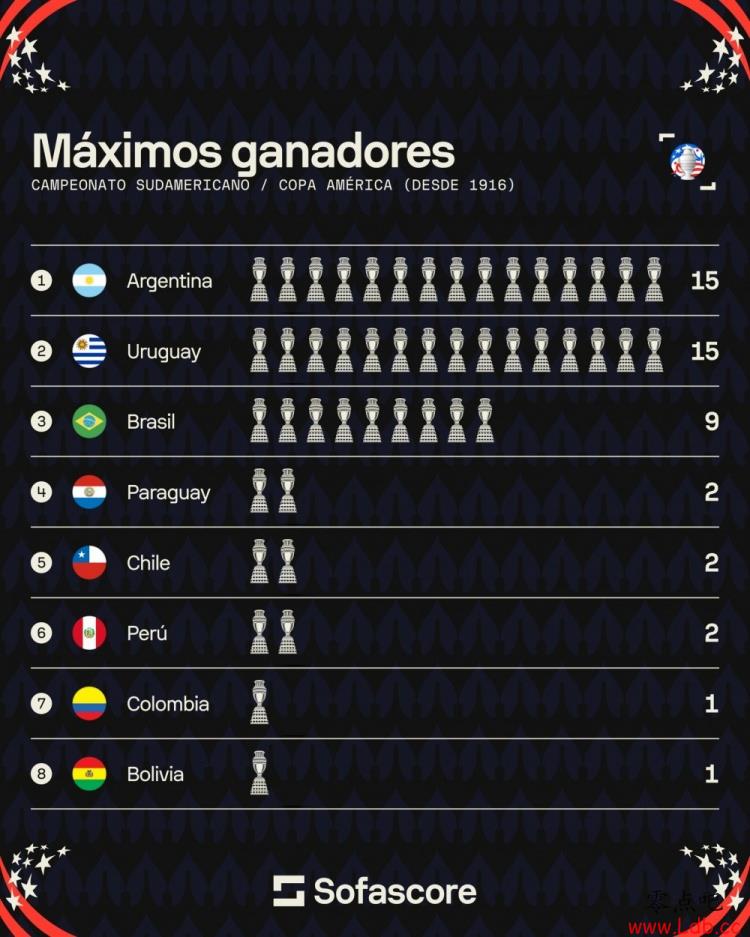 美洲杯冠军榜: