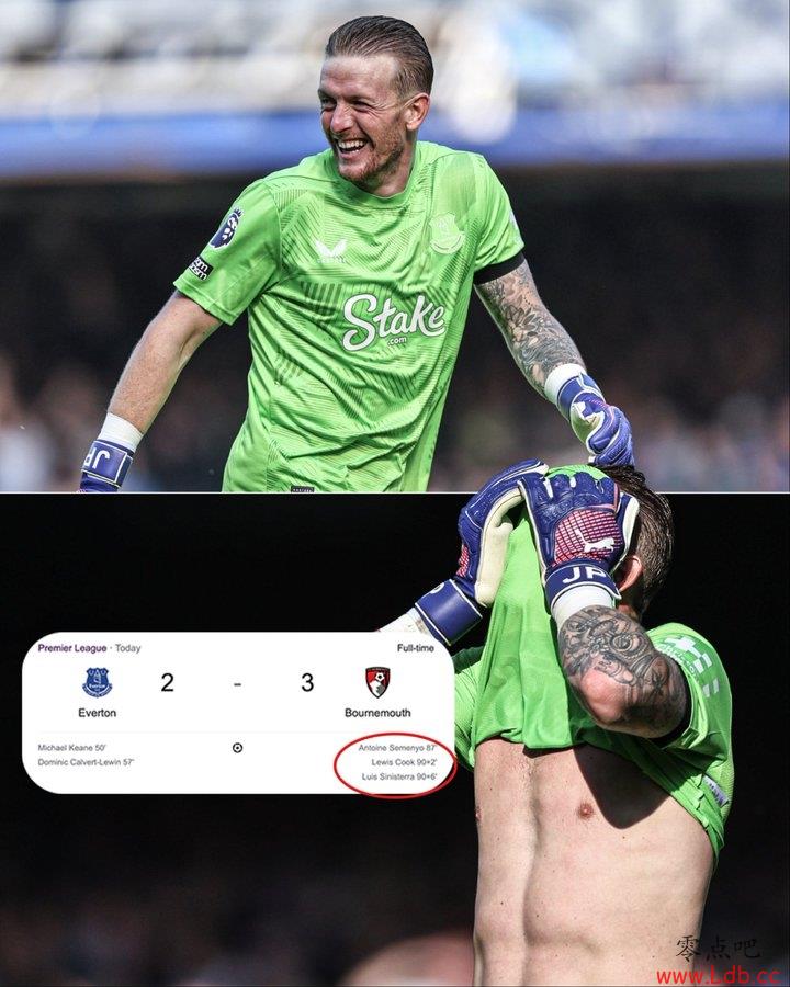 嘻嘻→不嘻嘻??埃弗顿遭9分钟3球逆转,ESPN晒皮克福德表情对比