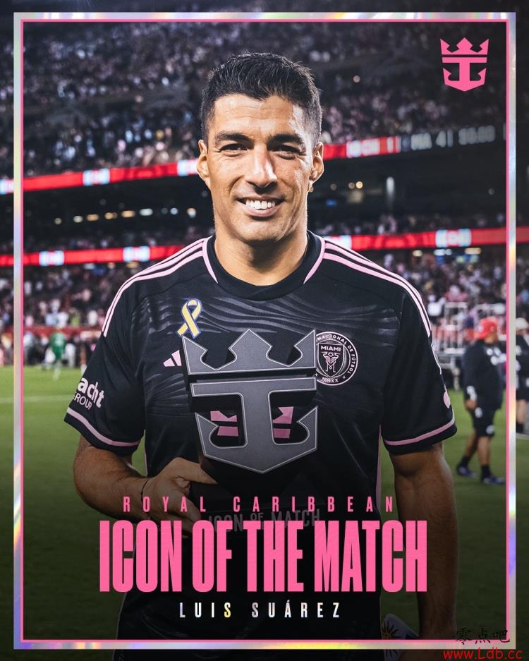 此役苏亚雷斯首发出战造乌龙+梅开二度,迈阿密国际官方确认,他当选此役最佳球员,连续两场比赛获得这一奖项。