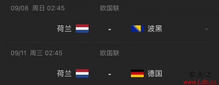 9月,荷兰将迎来两场欧国联赛事,分别迎战波黑和德国↓