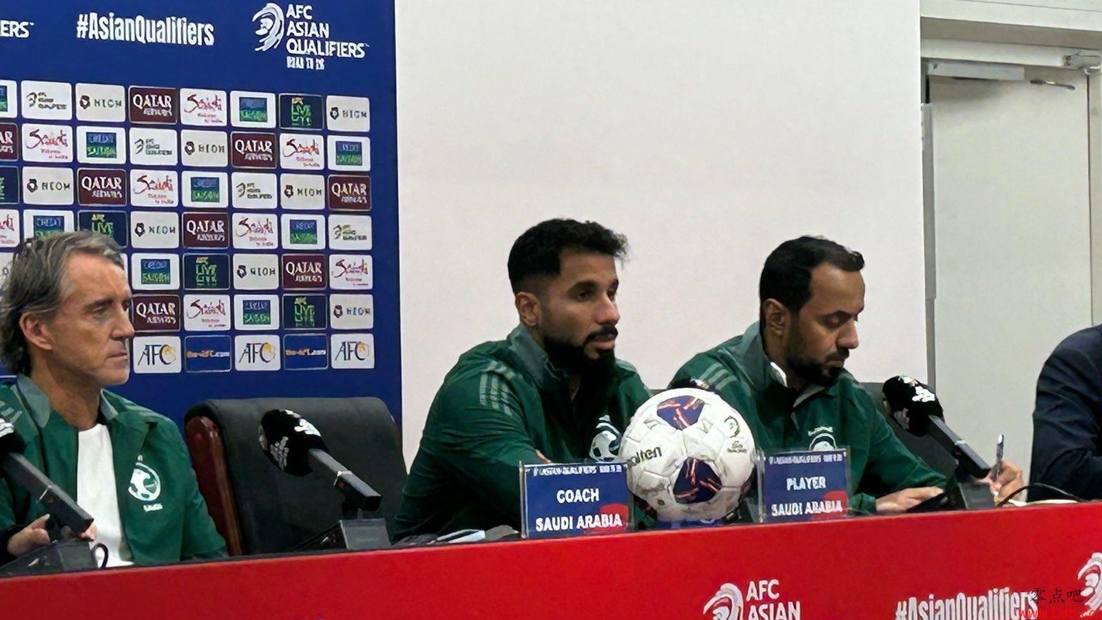 零点吧足球09月09日讯 明天20点,世预赛亚洲区第三阶段C组第2轮,国足将主场对阵沙特,今日沙特主帅曼奇尼携球员谢赫里出席赛前发布会。