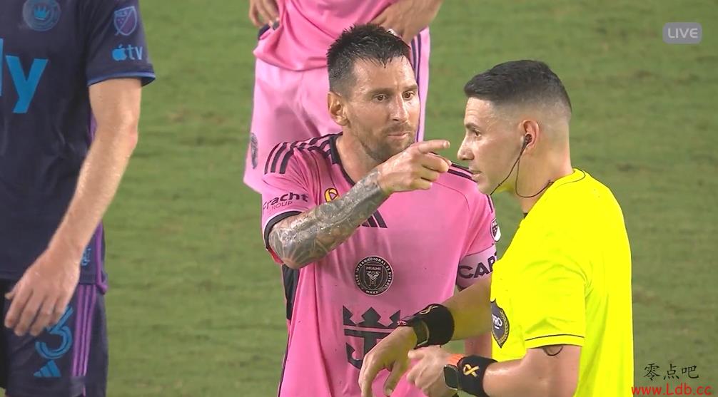 零点吧足球09月29日讯 今日美职联,迈阿密国际1-1夏洛特FC。赛后梅西不满判罚,被裁判出示黄牌。