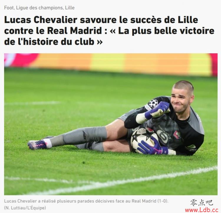 零点吧足球10月3日讯 欧冠第二轮,里尔主场1-0皇马,送对手赛季首败。赛后,里尔门将舍瓦利耶接受采访时表示,会终生铭记这场比赛。