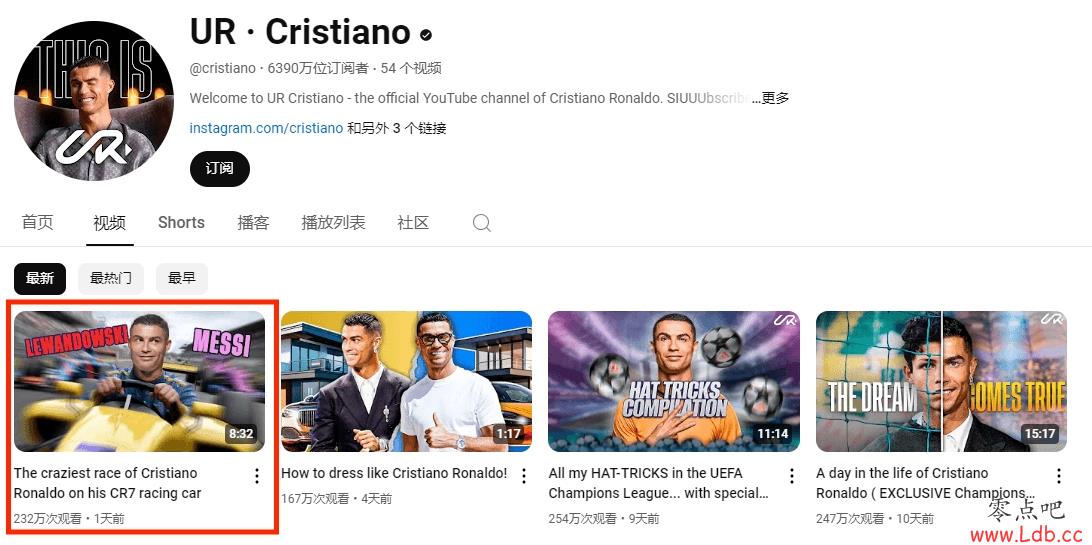 C罗的官方youtube账号昨日更新了视频,视频以F1竞赛的形式展现了C罗超越众多球星,成为历史进球数最多球员的过程。