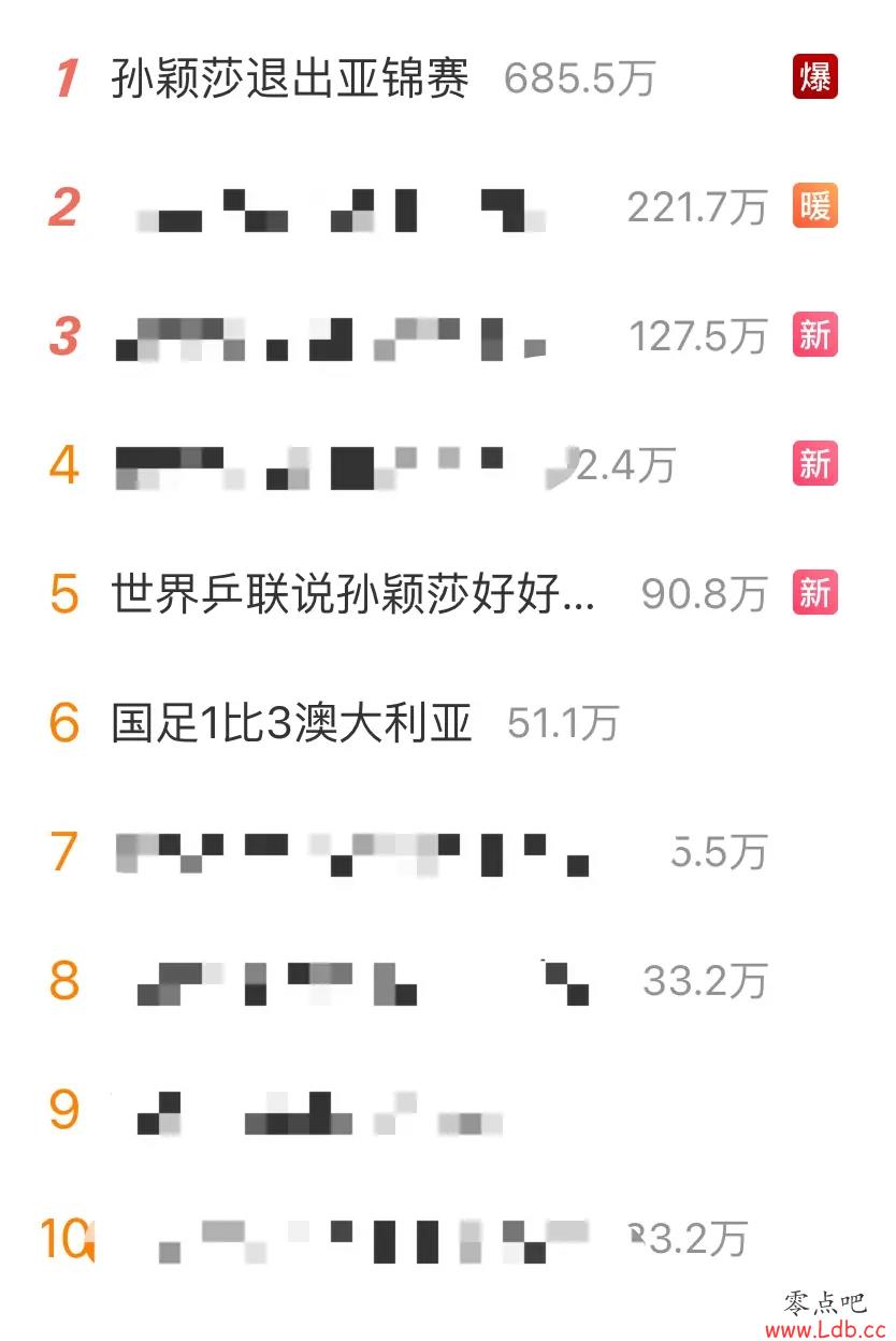关注度还是在的。国足1比3澳大利亚的结果出炉,登上了微博热搜榜第二。但扎眼的是,其热度值是第一位#孙颖莎退出亚锦赛#的1/10。